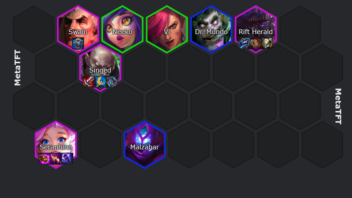 - Front line : Neeko, Vi, Jarvan IV, Rumble, Loris