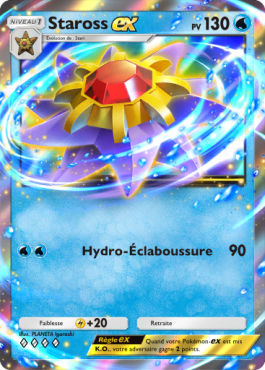 Staross ex est rapide et efficace grâce à une attaque de 90 dégâts sans coût de retraite, permettant une flexibilité stratégique. En y ajoutant Artikodin ex pour des attaques de soutien et Ondine