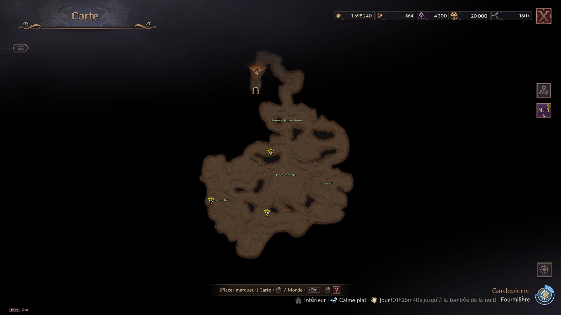 Le plus compliqué sera de trouver une Fourmi mellifère qui spawn un peu aléatoirement en terme de lieux et de temps. Vous pouvez vous rendre sur les points mis