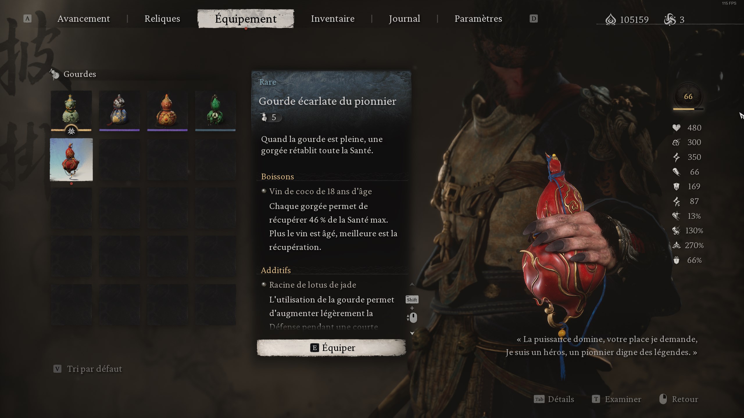 Pour la gourde, nous vous conseillons d’utiliser la gourde écarlate du pionnier que vous pouvez récupérer après avoir parlé plusieurs fois avec le gouaï cheval au cours du