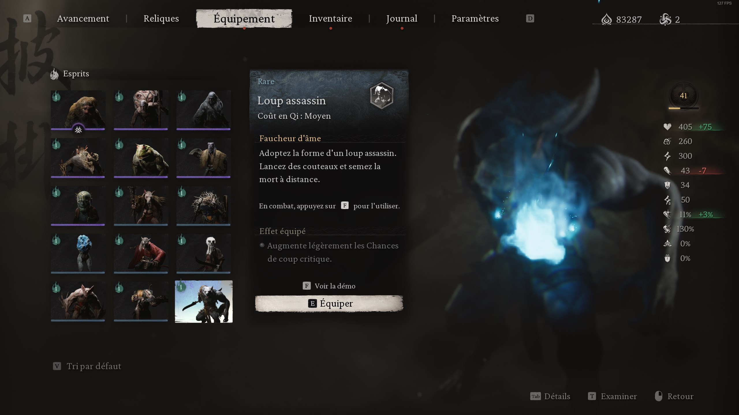 compétences utilisables par votre personnage, on retrouve les Esprits. Avant de pouvoir les utiliser, il est nécessaire de débloquer la fonction qui permet de les collecter et nous allons vous donner