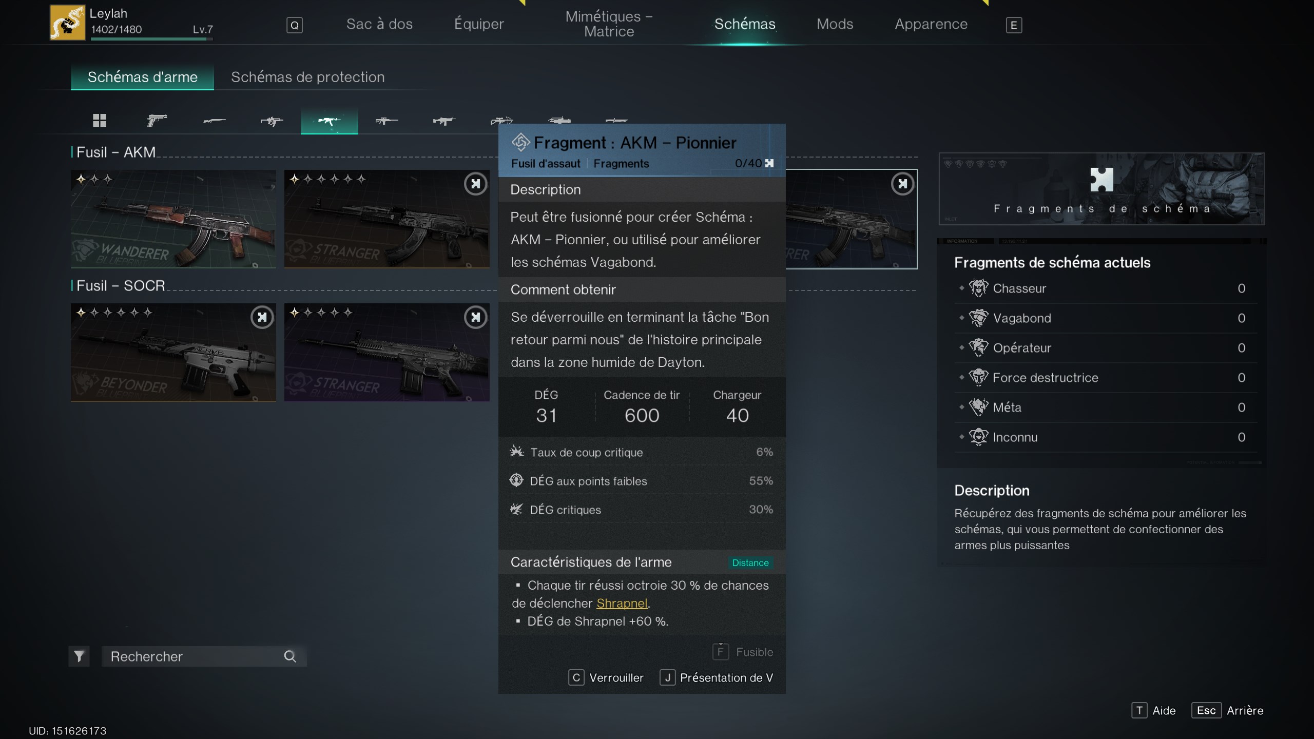 | A | AKM | Fusil d’assaut | Via les compétences mimétiques |