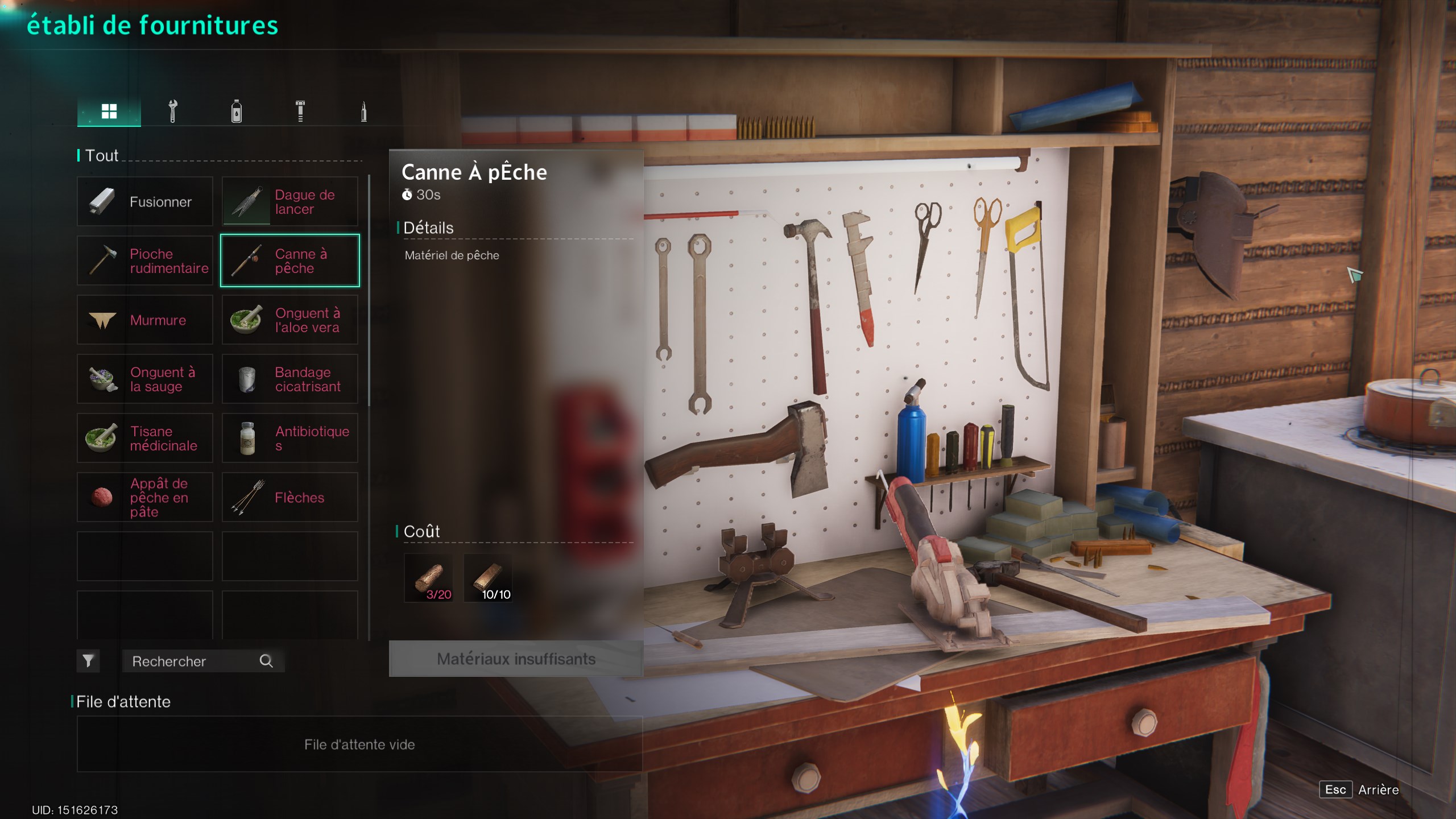 pouvoir créer une canne à pêche via cet établi contre 20 buches et 10 lingots de cuivre