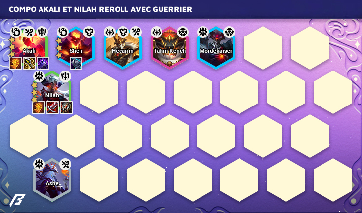 Comment jouer la compo Akali et Nilah Reroll avec Guerrier au Set 12 de TFT ?