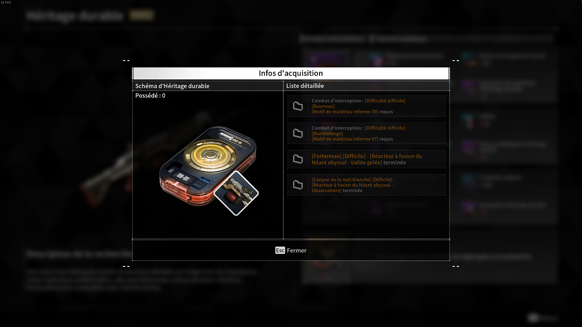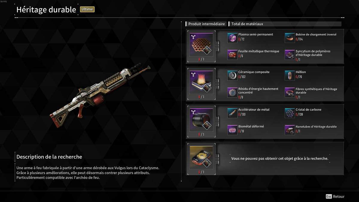 L’Héritage Durable est une des meilleures armes de The First Descendant qui est obtenable grâce à la recherche d’Anais. Voici ce qu’il vous faudra pour l’obtenir :