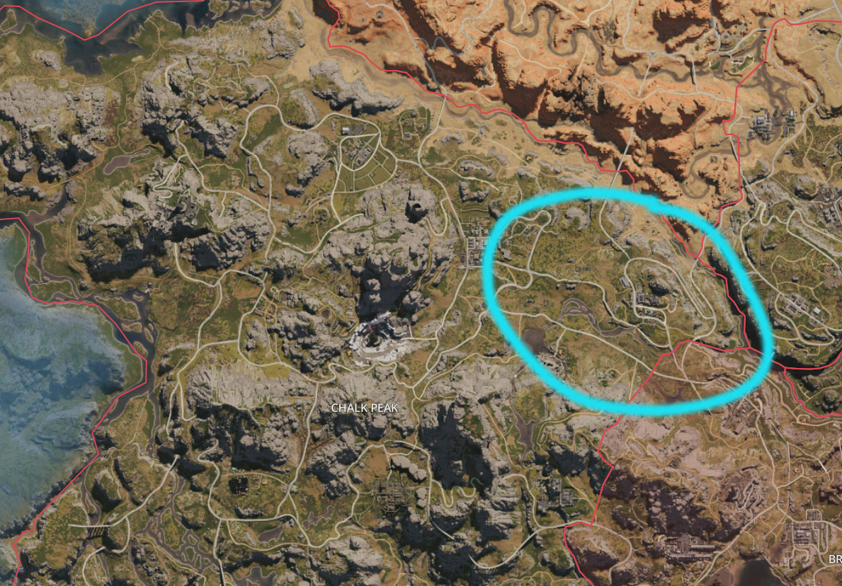 - Northern Chalk Peak : Suivez la route le long de la limite nord des Chalk Peaks.
