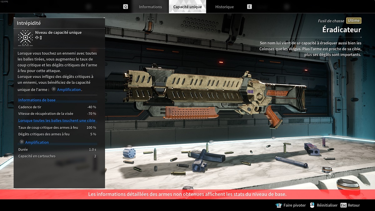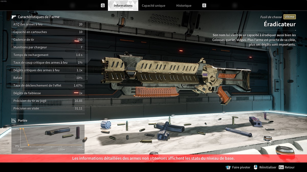 Bref, l’Éradicateur n’est pas super dur à obtenir, il vous faudra juste tout un tas de matériaux différents. Au niveau de ses statistiques, l’Éradicateur dispose d’un excellent burst: