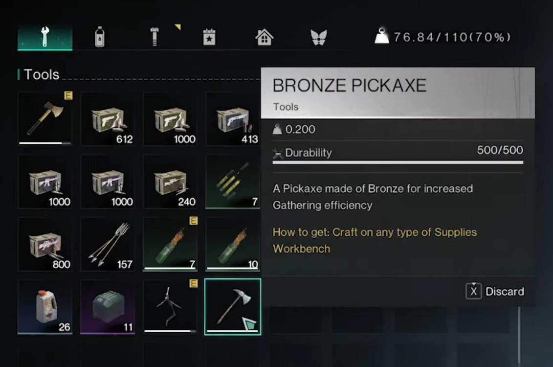 minerai de fer, mais aussi débloquer le plan de la pioche en bronze. Pour rappel, pour faire une pioche de bronze, il vous faut un atelier et utiliser 5