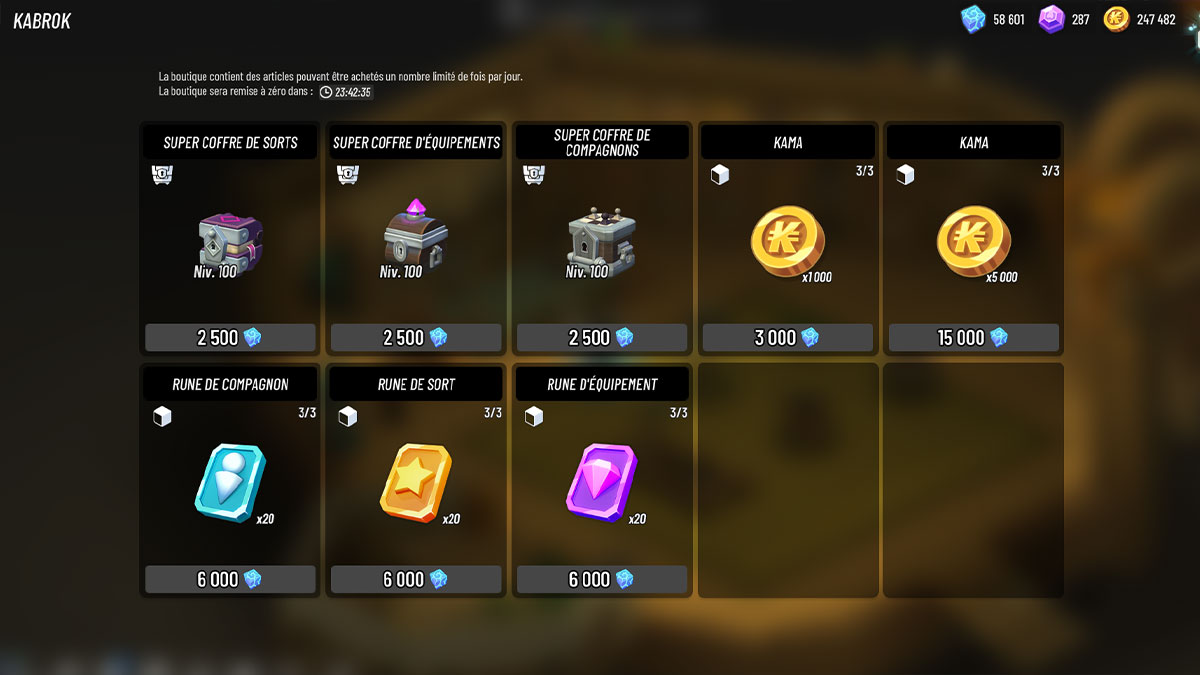 Il y a énormément à acheter avec les Fragments de Wakfu. Pour les dépenser, vous devez vous rendre auprès de Kabrok, un vendeur qui vous propose plusieurs coffres en échange de ces Fragments.