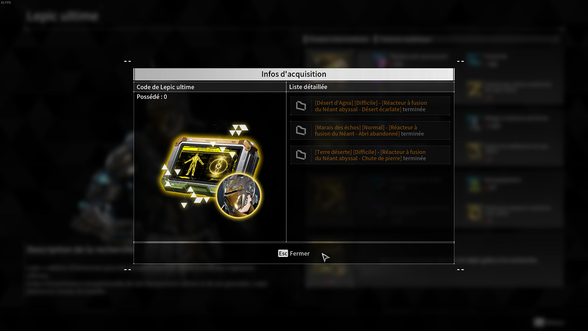 Pour crafter cette version ultime de Lepic sur The First Descendant, il vous faudra 4 objets différents :