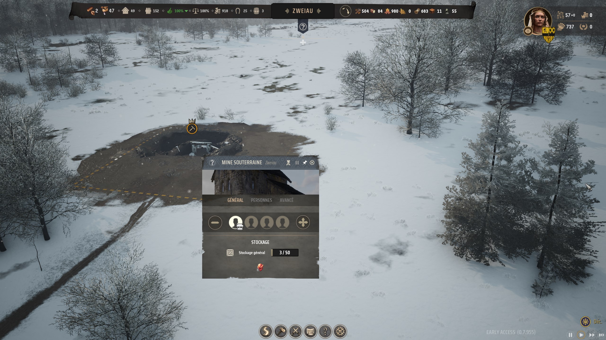 Après avoir récupéré du minerai de fer, vous allez pouvoir le transformer en lingots de fer dans un Bas fourneau. Comme pour la Malterie, vous allez devoir utiliser du combustible tous les mois pour mettre au bâtiment de fonctionner. Vous n’avez