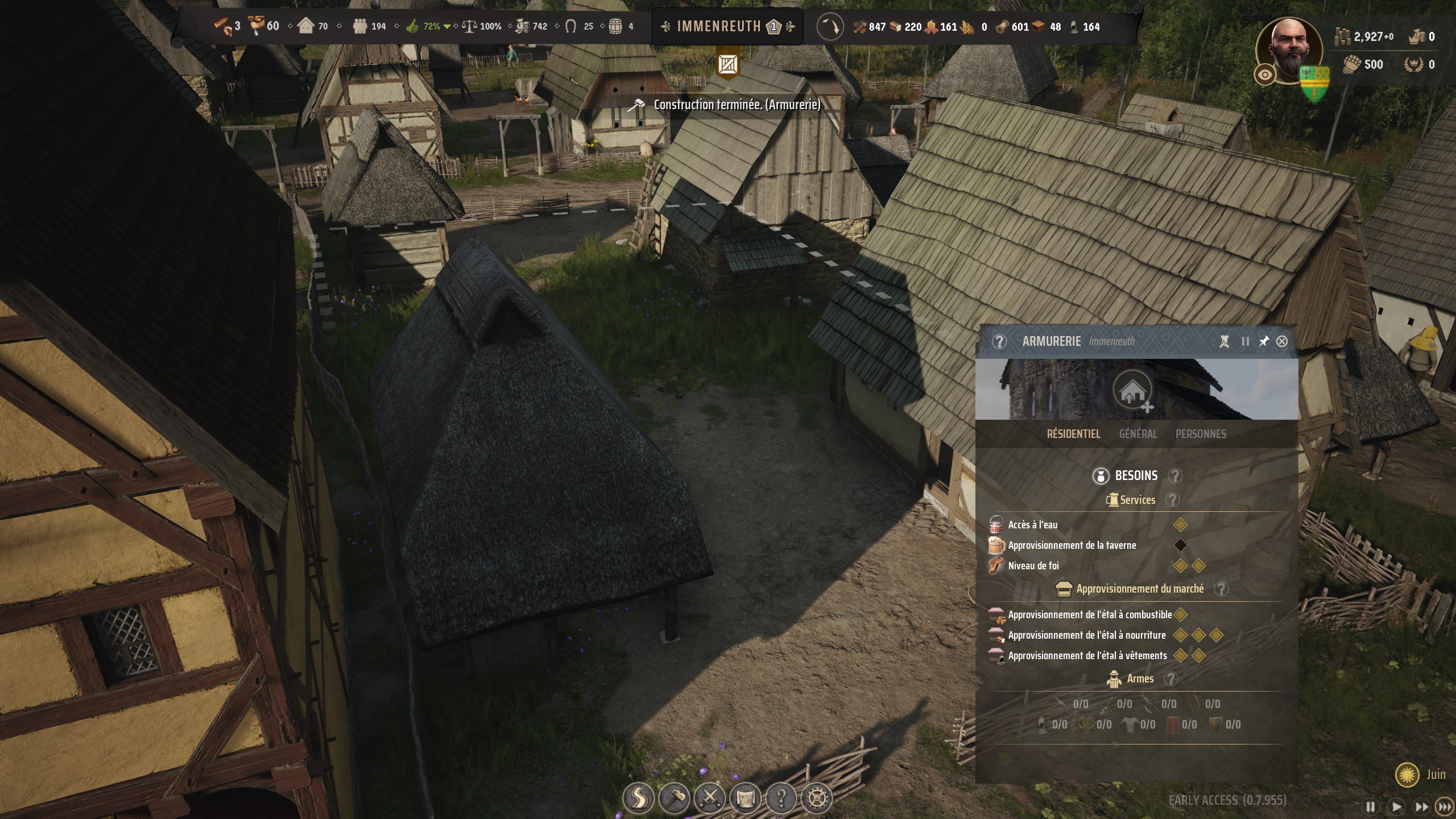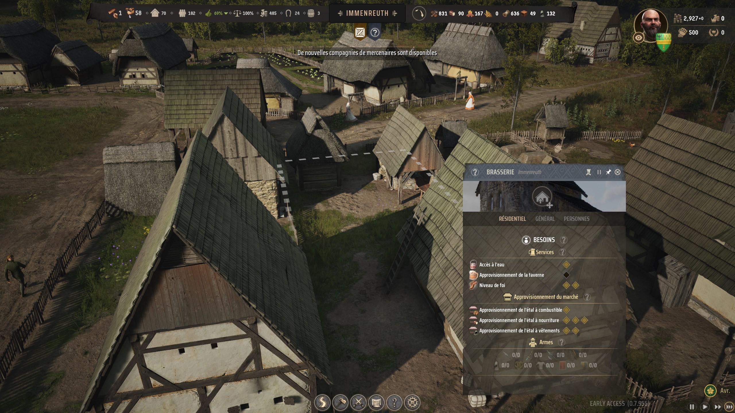 Là encore, les armes produites depuis l’atelier de forgeron peuvent être utilisées pour équiper vos armées ou votre milice.