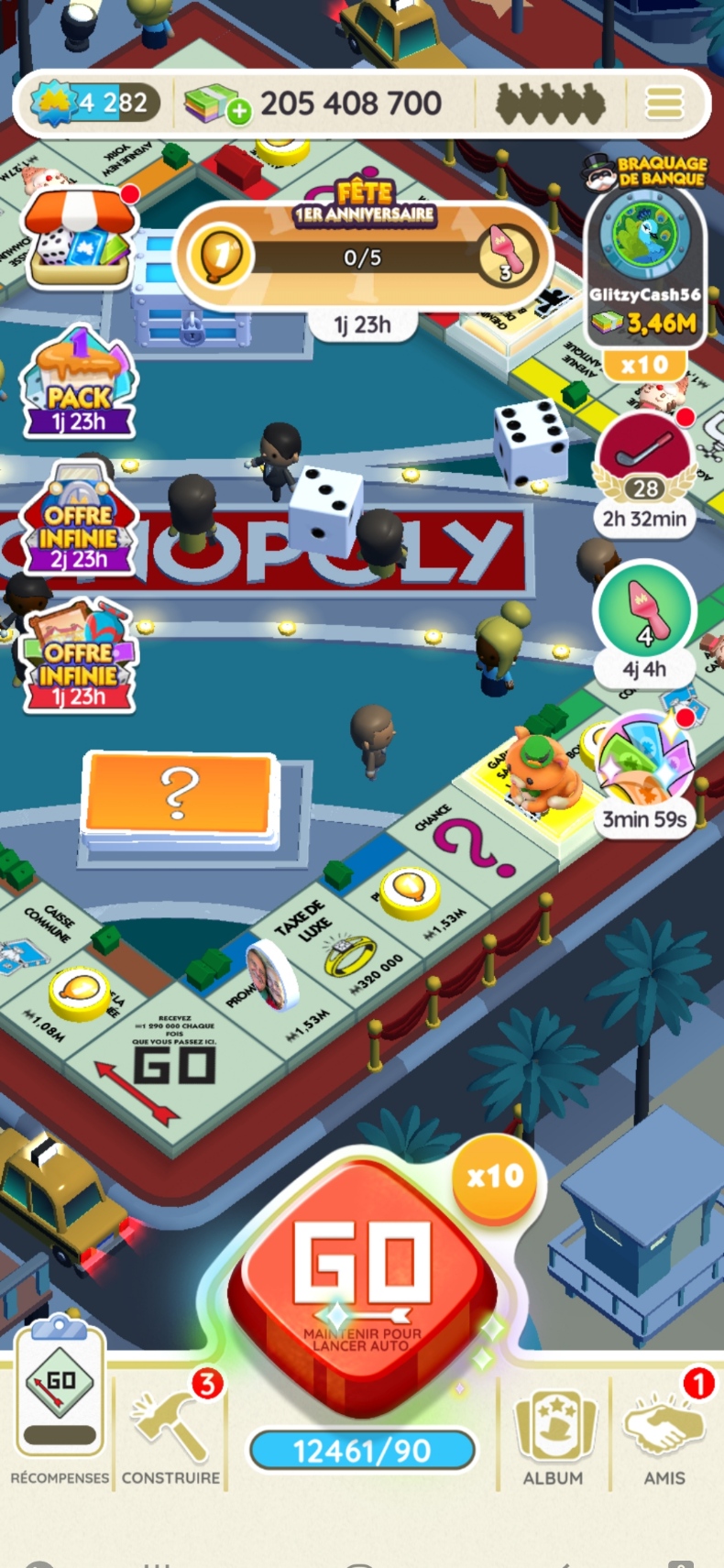 également possible de braquer la banque des autres joueurs et de détruire leurs bâtiments. Dans Monopoly Go!, les joueurs disposent d’un nombre limité de lancers de dés. Une fois qu’ils ont tous été