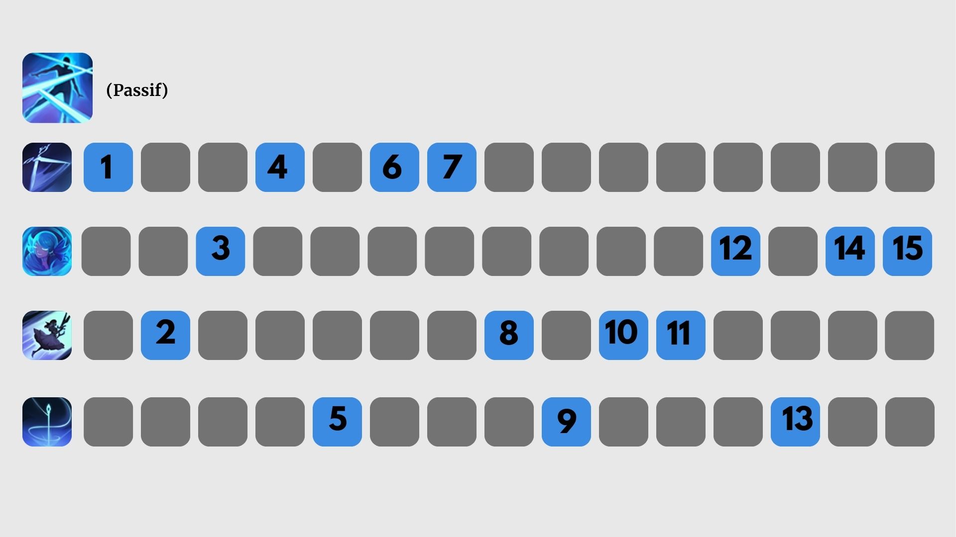 La priorité pour Gwen est d’augmenter son premier sort. Ce sort est très utile pour infliger de lourds dégâts. Vous devez suivre cet ordre-là : 1ᵉ sort >>> 2ᵉ sort