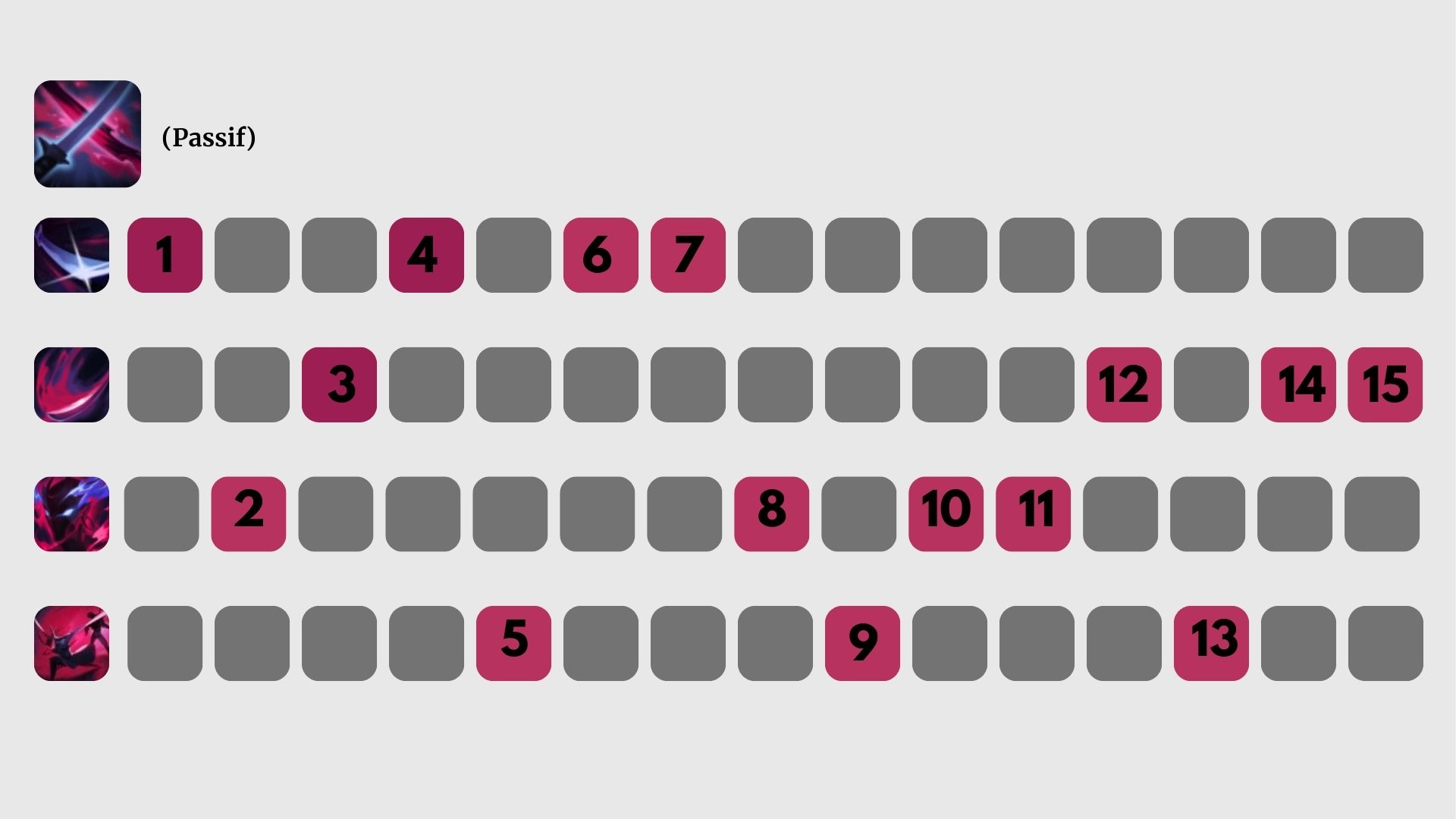 La priorité pour Yone est d’augmenter son premier sort pour infliger davantage de dégâts. Ce sort est très utile pour burst votre adversaire. Vous devez suivre cet ordre-là :