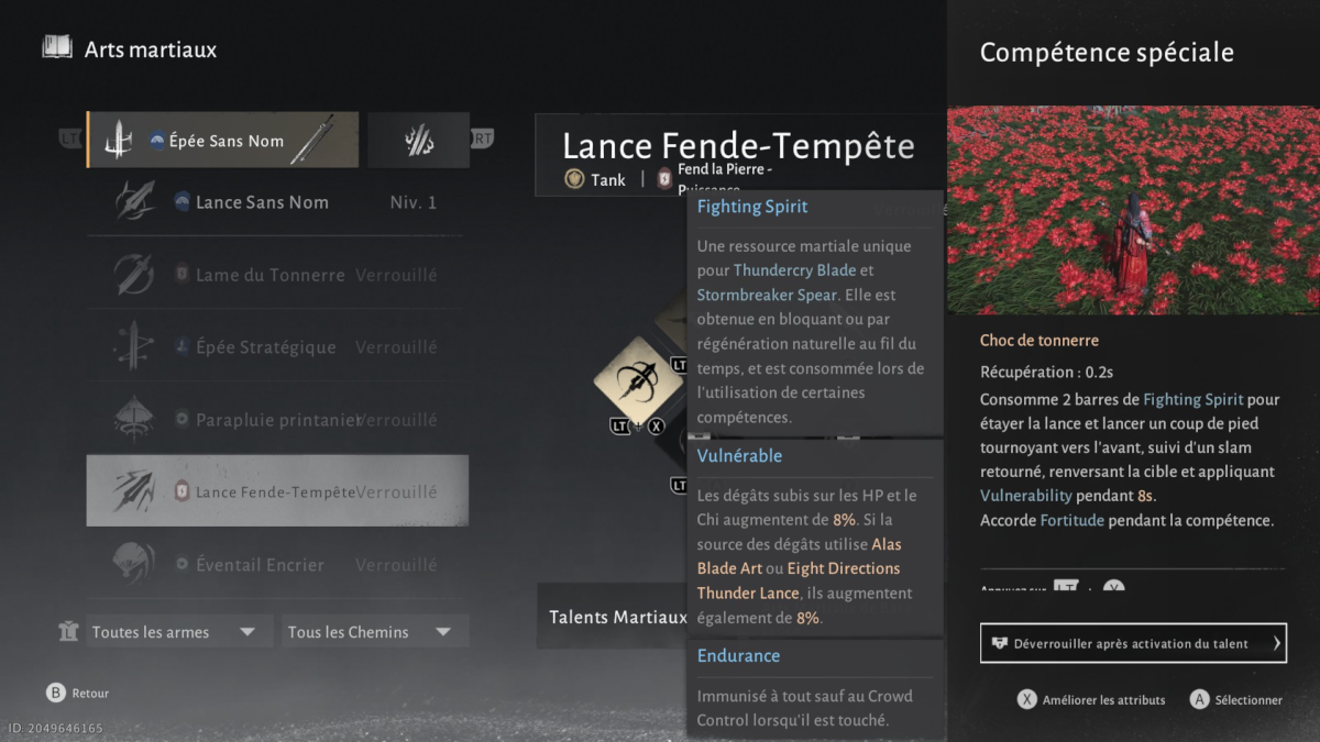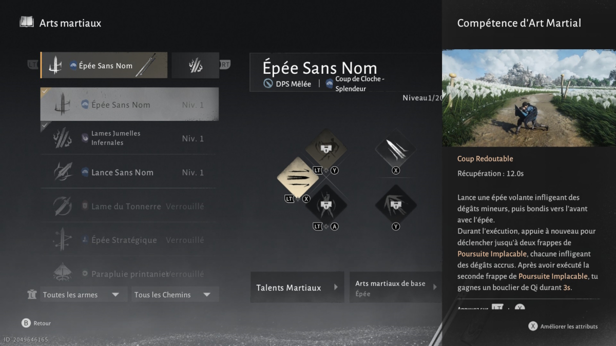 L’Épée Sans Nom s’impose comme l’arme “par défaut” que l’on garde longtemps, parfois jusqu’à la fin du jeu. Sa fluidité dans les combos, sa capacité à déclencher