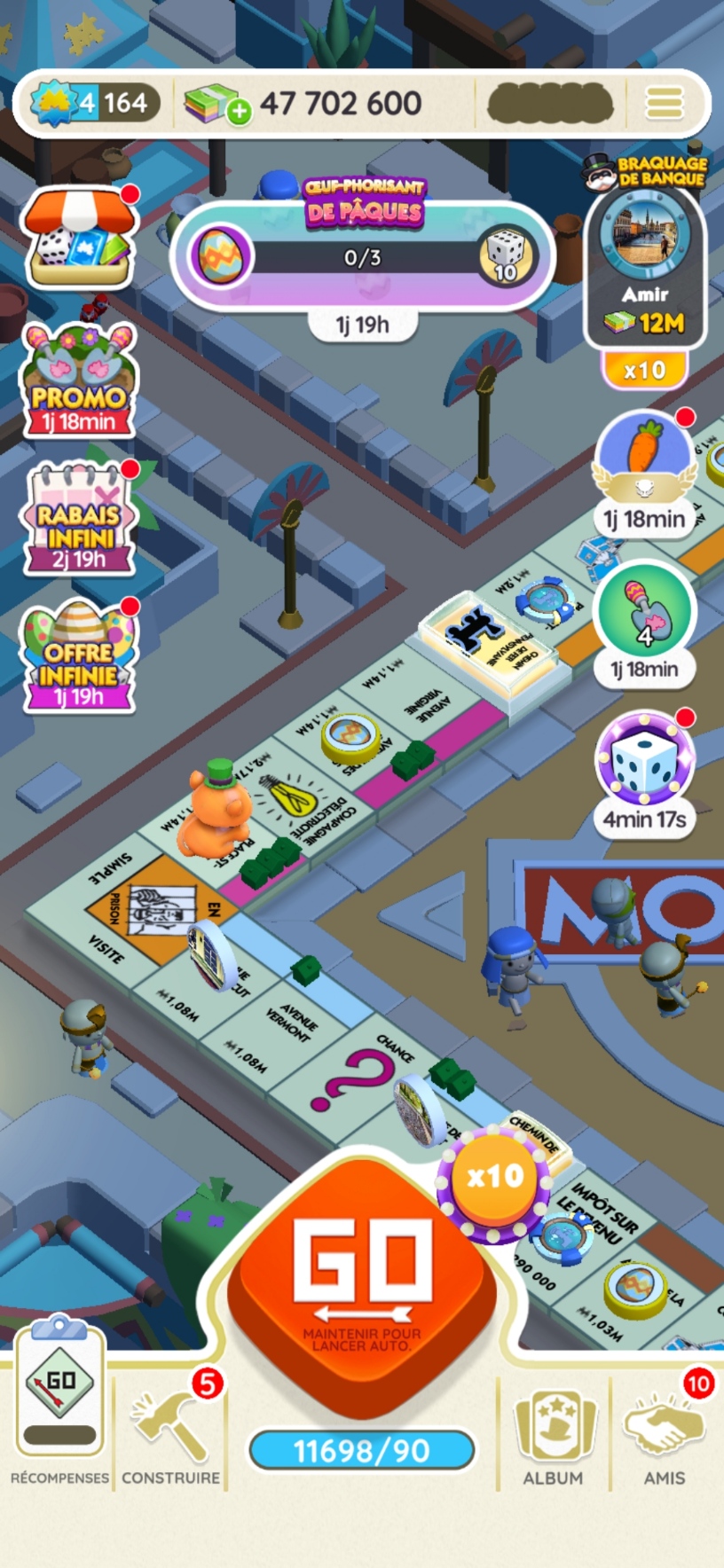 également possible de braquer la banque des autres joueurs et de détruire leurs bâtiments. Dans Monopoly Go!, les joueurs disposent d’un nombre limité de lancers de dés. Une fois qu’ils ont tous été