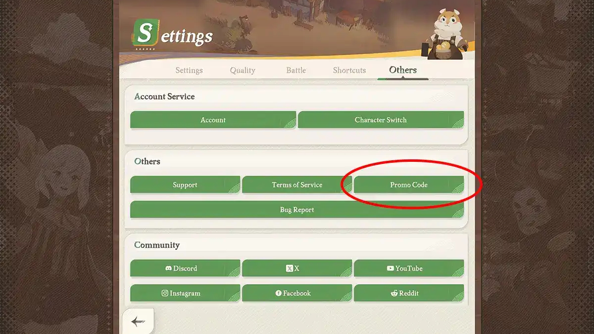 de vous rendre dans les paramètres. Ensuite, cliquez sur « Autres » et cliquez sur « Code Promo« , rien de très compliqué.