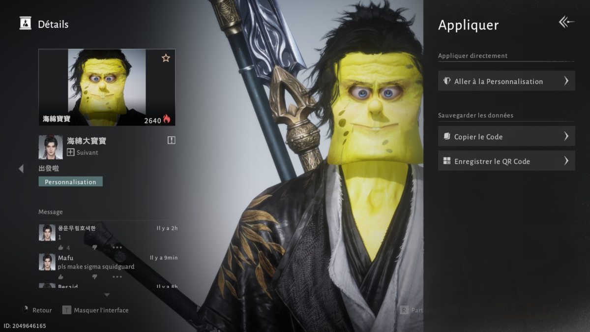 L’éditeur de personnage de Where Winds Meet propose un système de QR codes pensé