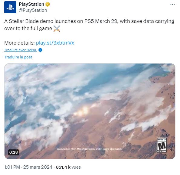 Si vous souhaitez tester Stellar Blade avant sa sortie ce 26 avril, eh bien, une démo est téléchargeable à partir de ce vendredi 29 mars à 15 h et voici ce que vous devez faire
