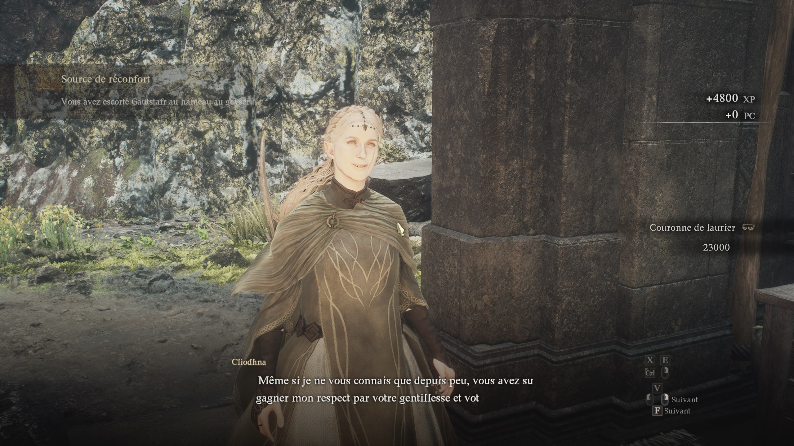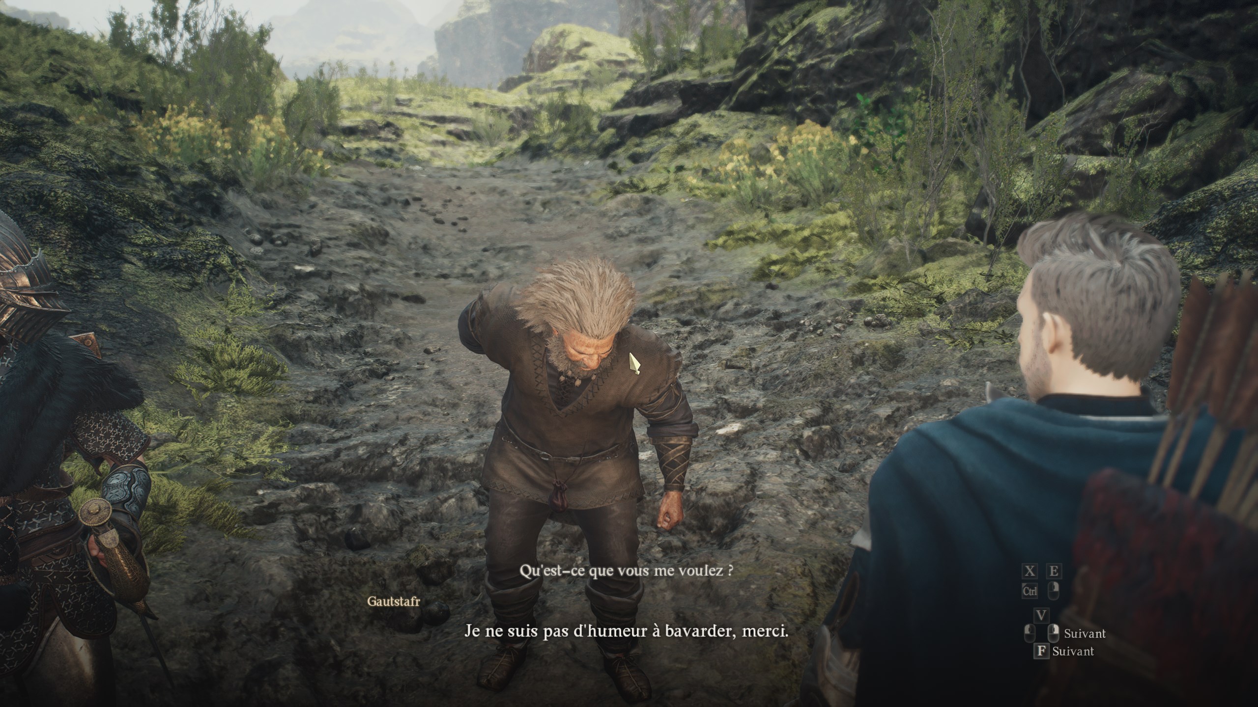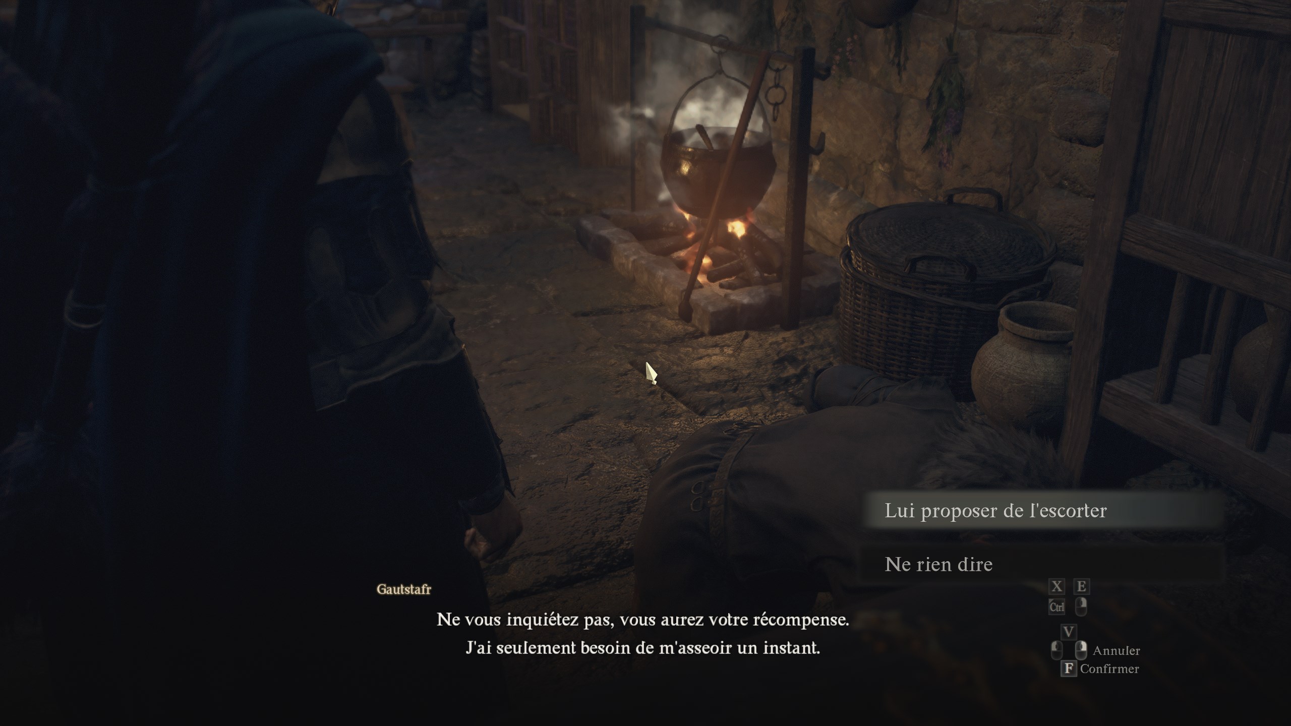 Sur place, vous allez avoir droit à une série de dialogues entre vous, Gautstafr et sa femme elfe, Cliodhna. Cependant, au cours de la discussion, le nain va de nouveau se