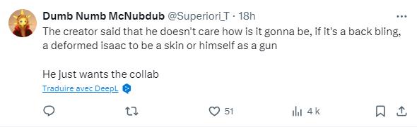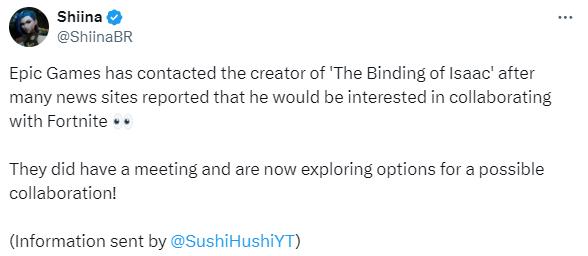 Royale d’Epic Games. Comme le rapporte le compte de leak bien connu, ShiinaBR, Epic Games aurait contacté Edmund McMillen, le papa de The Binding of Isaac pour amener la licence dans