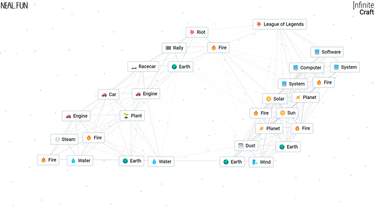 Si vous voulez créer League of Legends dans Infinite Craft, vous allez devoir faire pas mal de combinaisons jusqu’à pouvoir la faire. Voici les associations à faire dans l’ordre