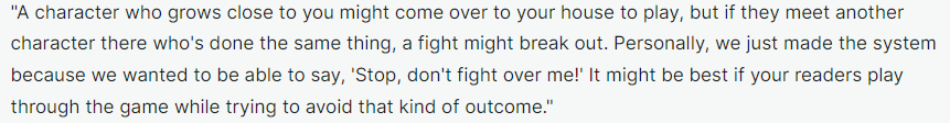 retrouve le système de romance et nous allons tenter de vous indiquer s’il y en a un et comment il pourrait fonctionner si c’est le cas.