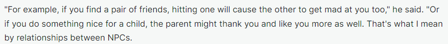 pourrait vous remercier et vous apprécier davantage. C’est ce que j’entends par relations entre les PNJ.