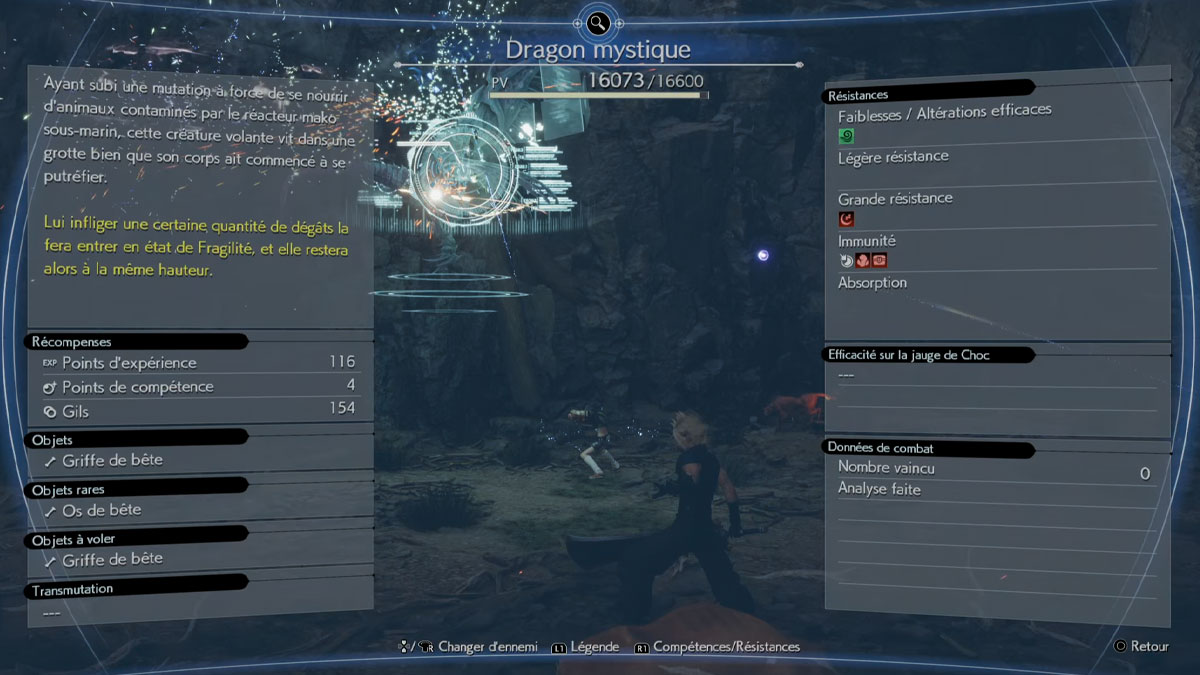 En suivant le faisceau lumineux, vous arriverez dans la tanière du dragon. Vous devez continuer à pied et vous, allez devoir affronter le dragon mystique. Si vous n’avez pas la matéria Analyse,