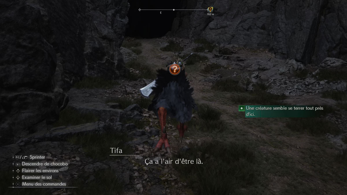 Colin vous demande de trouver un appât pour faire venir une grande créature volante qui lui a sauvé la vie. Pour ce faire, rendez-vous à cet endroit avec votre Chocobo.