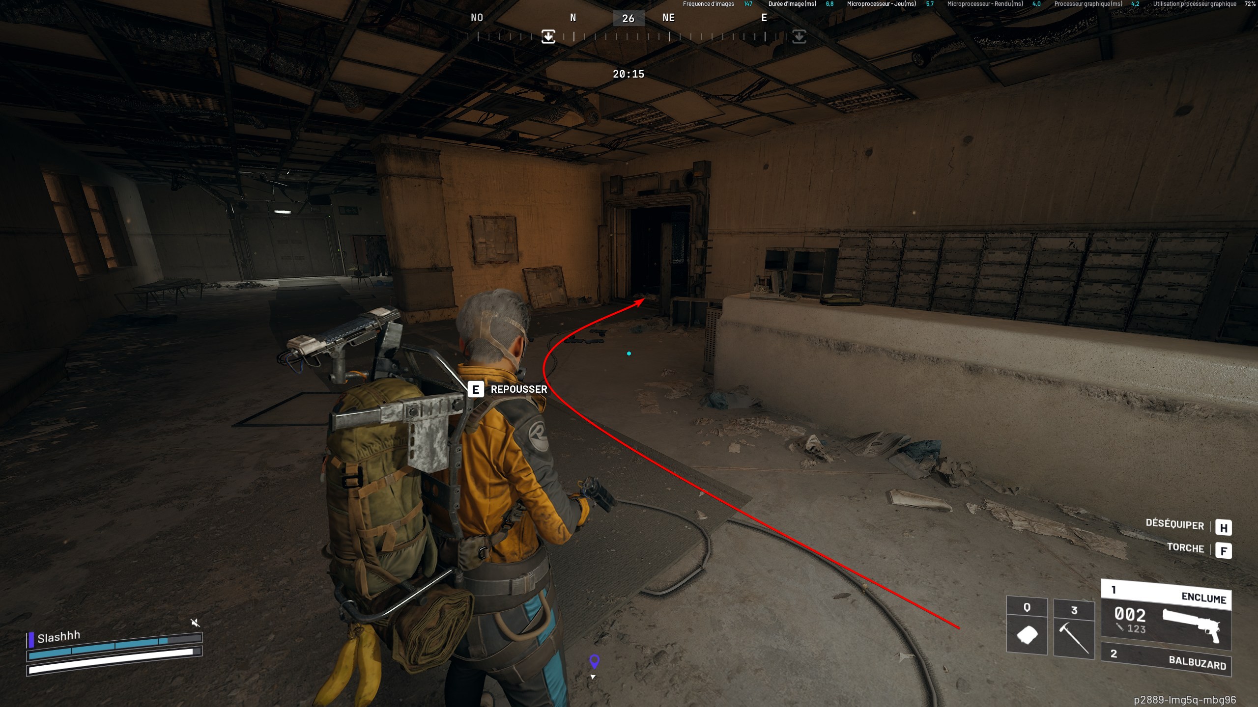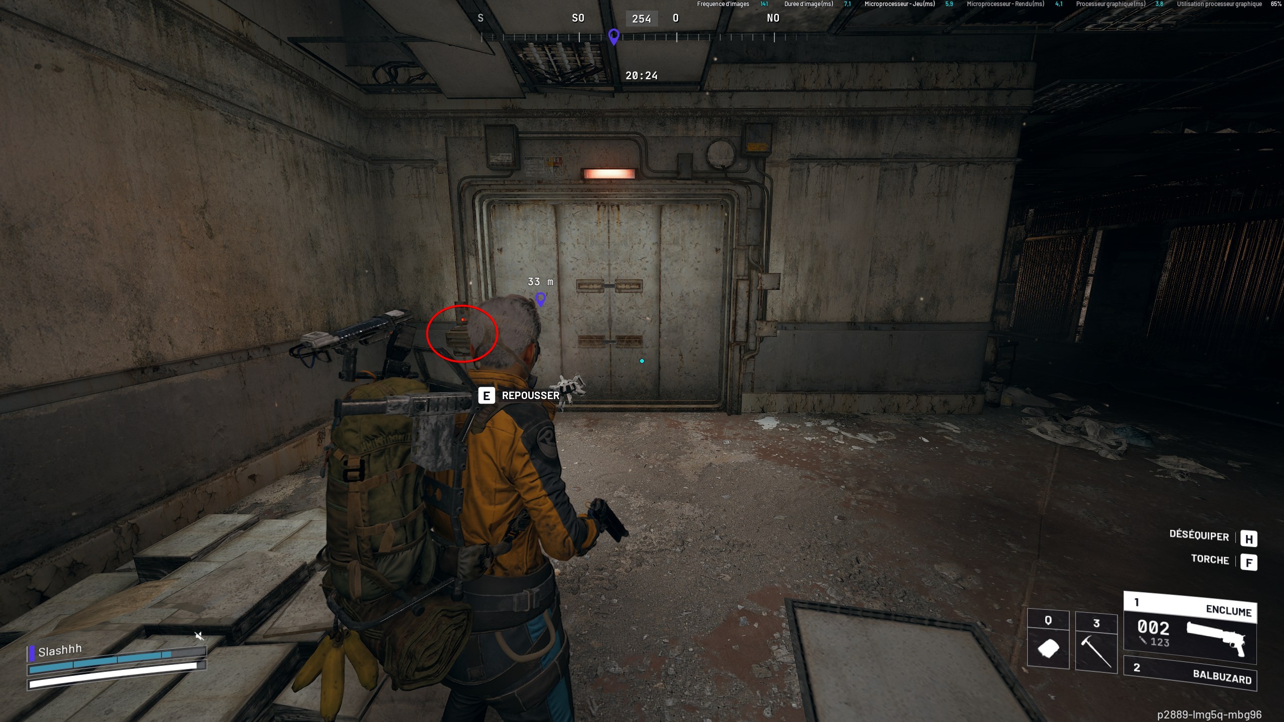 surveillance du barrage. Dans cette salle, vous trouverez plusieurs casiers, des ressources disséminées un peu partout, ainsi que des caisses d’armes, de fournitures médicales ou de munitions.