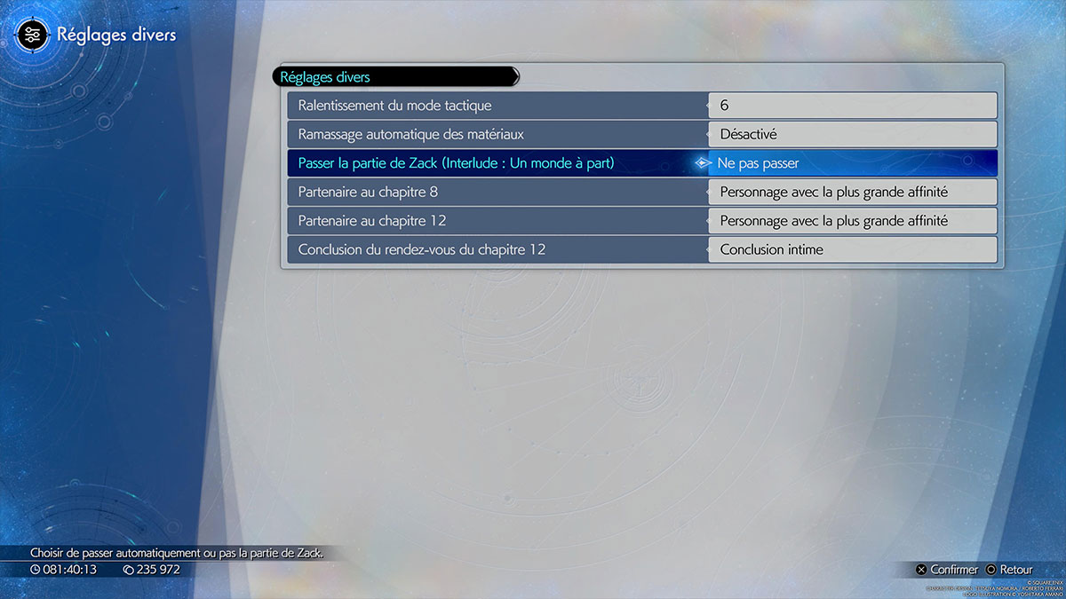 choix lors de certains dialogues qui influenceront l’évolution votre affinité avec Barret et les autres personnages.