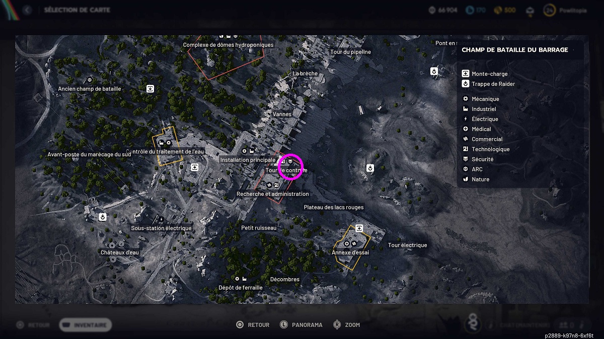 La quête « Les yeux dans le ciel » va vous obliger à vous rendre sur trois cartes : Champ de Bataille du Barrage, Port Spatial et Ville Enfouie. Ici, nous allons commencer par celle