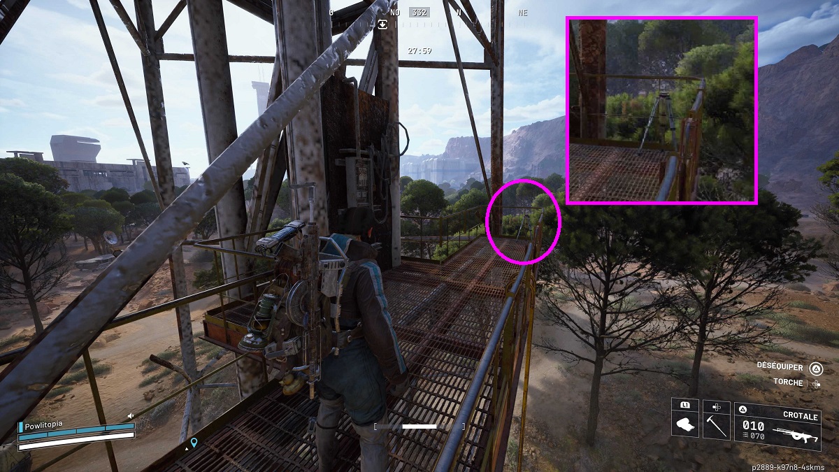 Une fois en haut, vous n’avez plus qu’à vous diriger vers le pylône électrique : là-bas, vous trouverez dans le coin un objet vous permettant de placer votre scanner : mettez-le