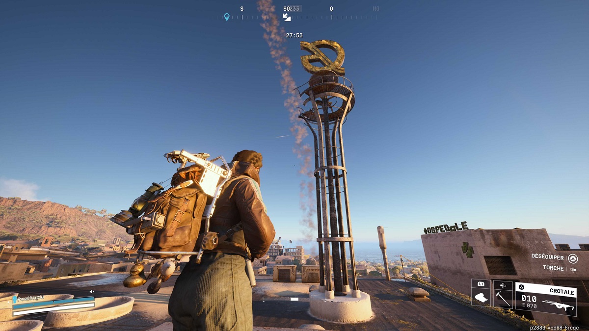 Maintenant, vous allez devoir aller sur la carte Port Spatial. Là-bas, rendez-vous à l’Est de la map, et plus précisément à la Tour de communication : vous allez