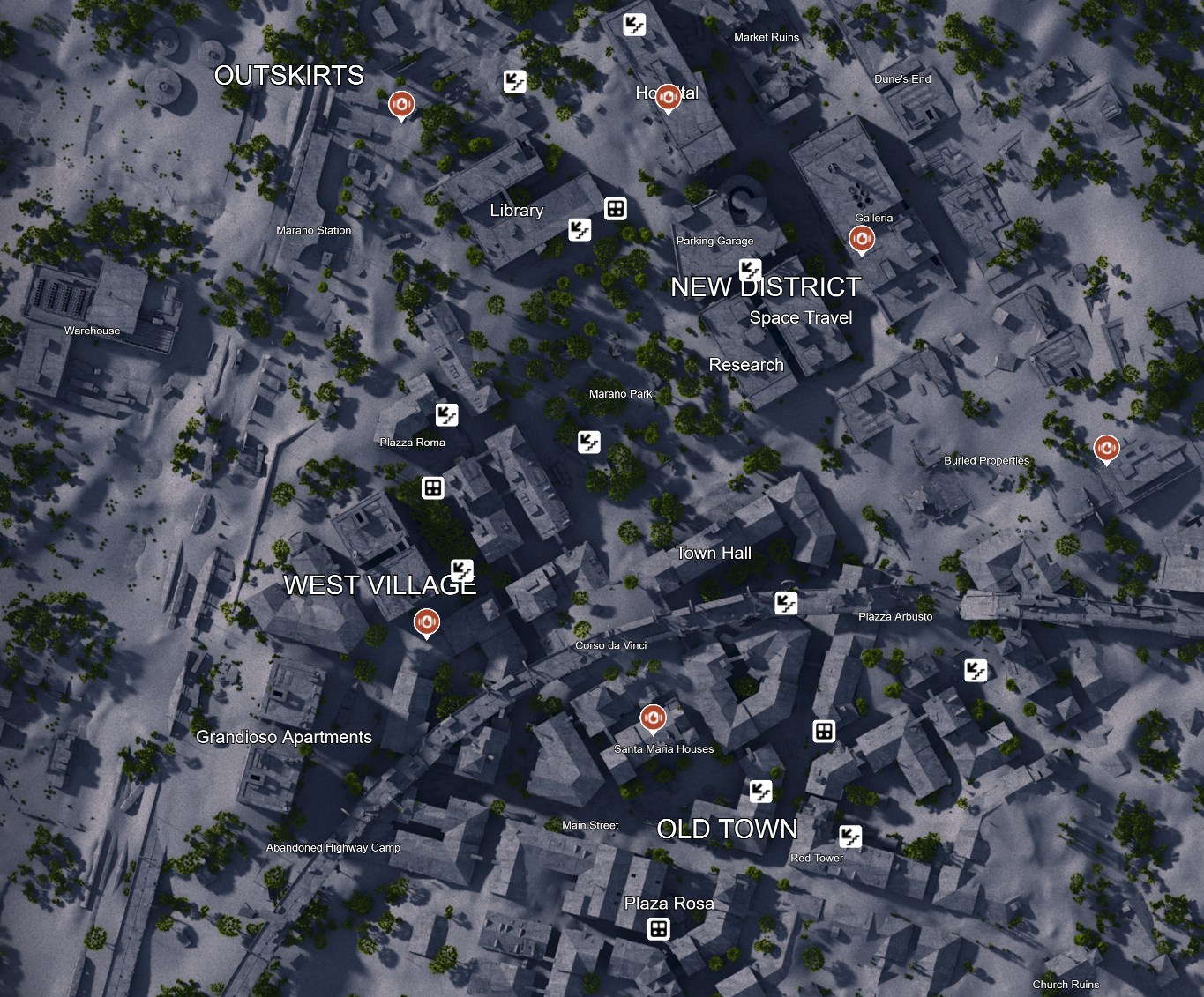 Lorsque vous approchez d’un de ces robots, vous allez voir des lumières sur le côté et s’ils deviennent rouges, il vous attaque. Pour vous aider à les localiser, voici