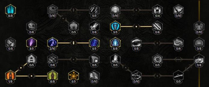 des compétences et passifs à monter selon le guide proposé sur Maxroll (source) :