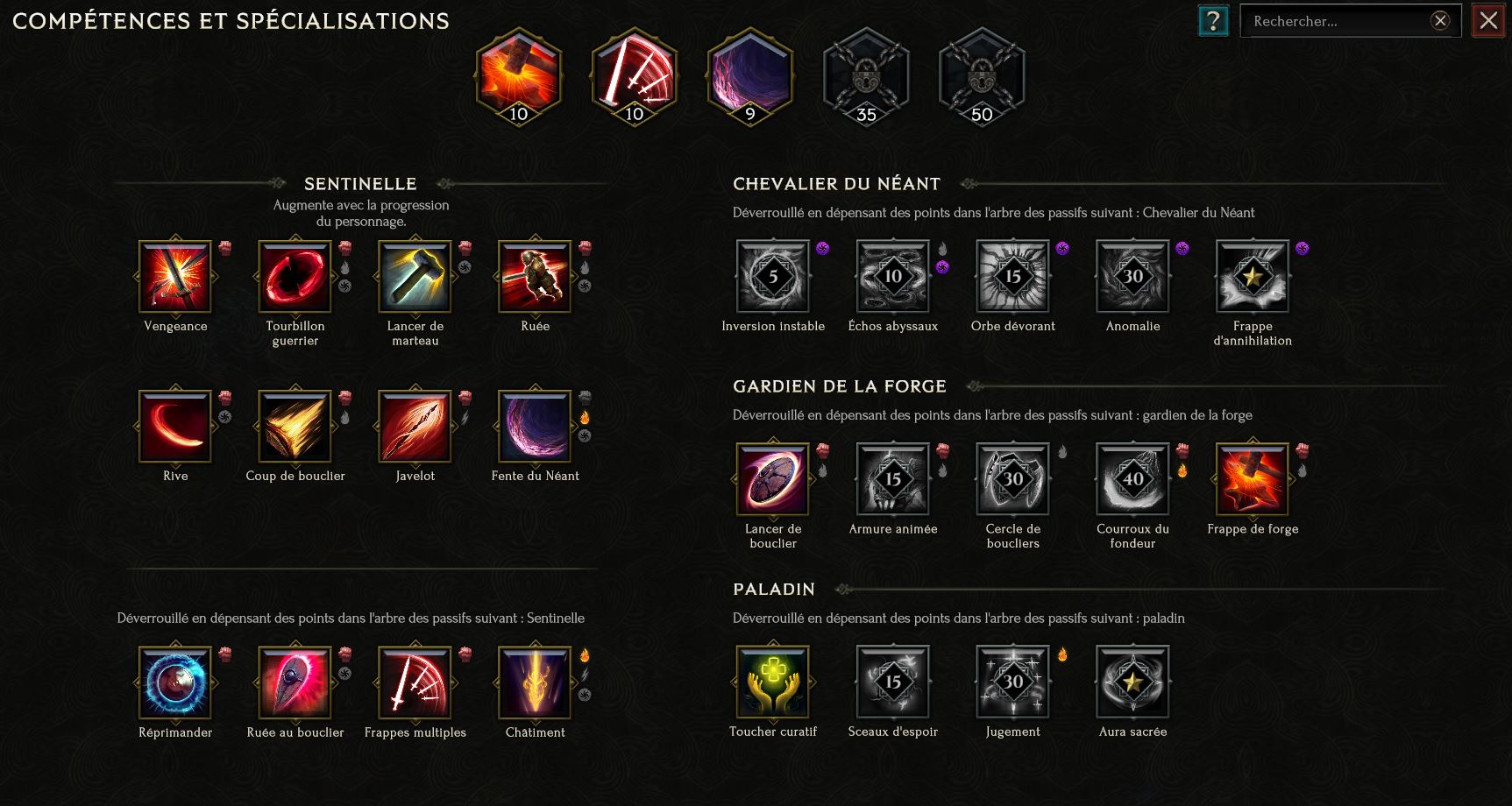 Pour se faire, vous pouvez cliquer sur Respécialisation en haut à droite de votre arbre de compétences.