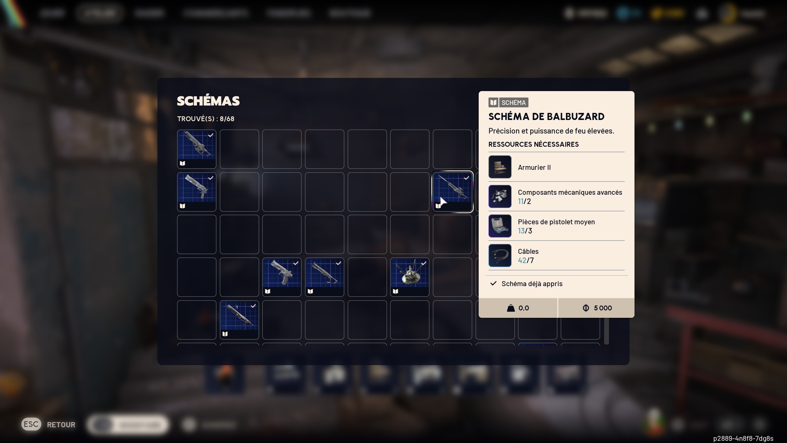 2 composants mécaniques avancés, 3 pièces de pistolet moyen et 7 câbles. Enfin, nous vous rappelons que le Balbuzard (ou Osprey) est l’une des meilleures armes du