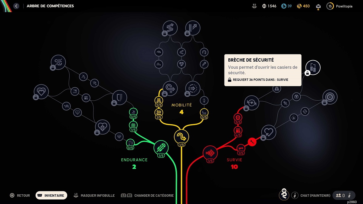 points dans la section Survie : en effet, Brèche de Sécurité nécessite pas moins de 36 points de compétences dans la section Survie.
