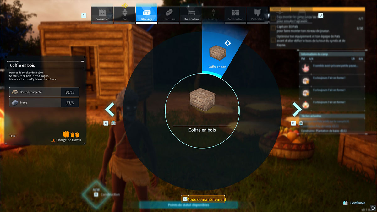- Création de coffres de rangement : Construisez des coffres de rangement dans votre base pour y déposer des objets.