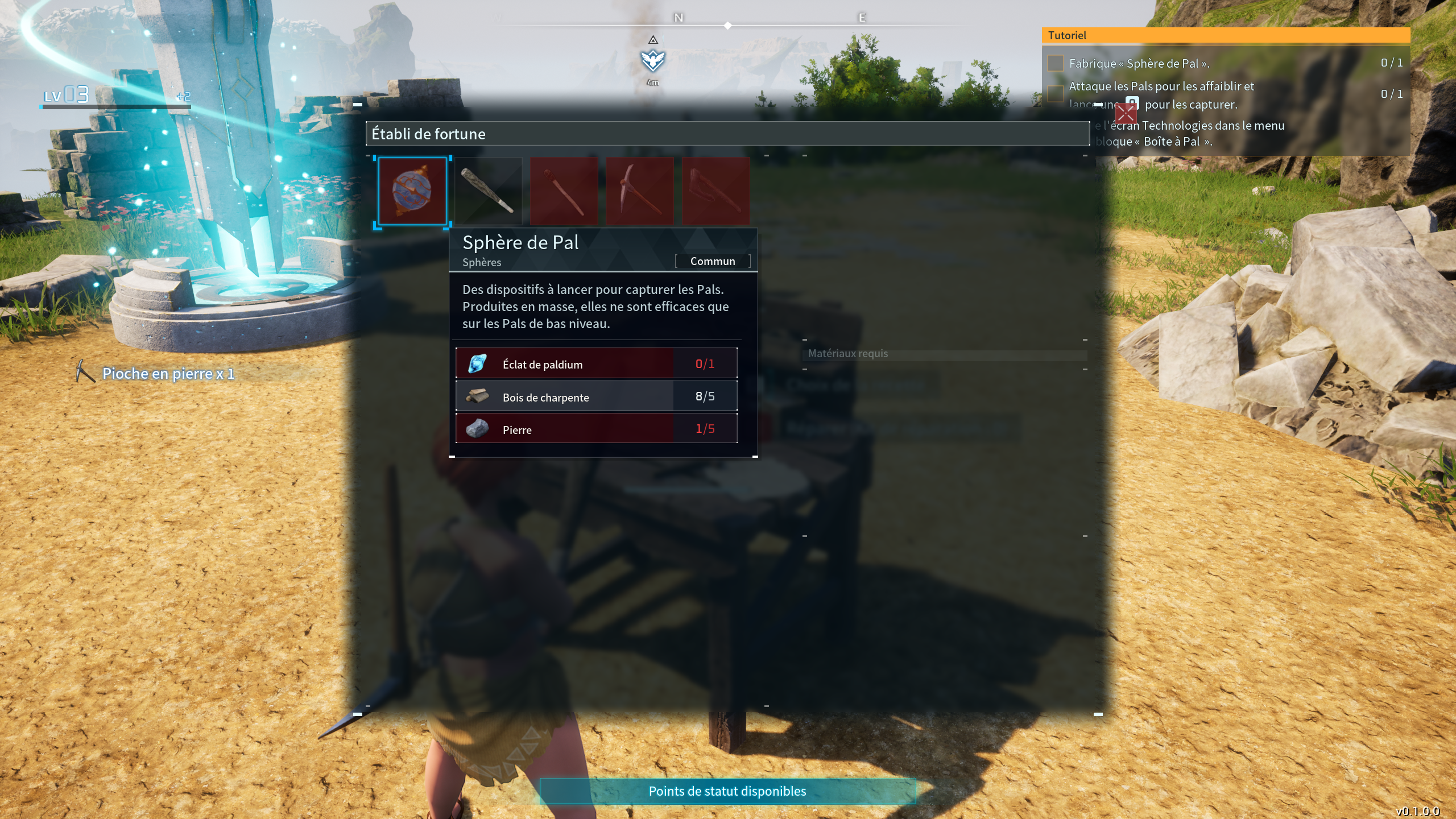 La création de Sphères de Pal dans Palworld est un processus simple, mais indispensable pour capturer des Pals. Suivez ces étapes :