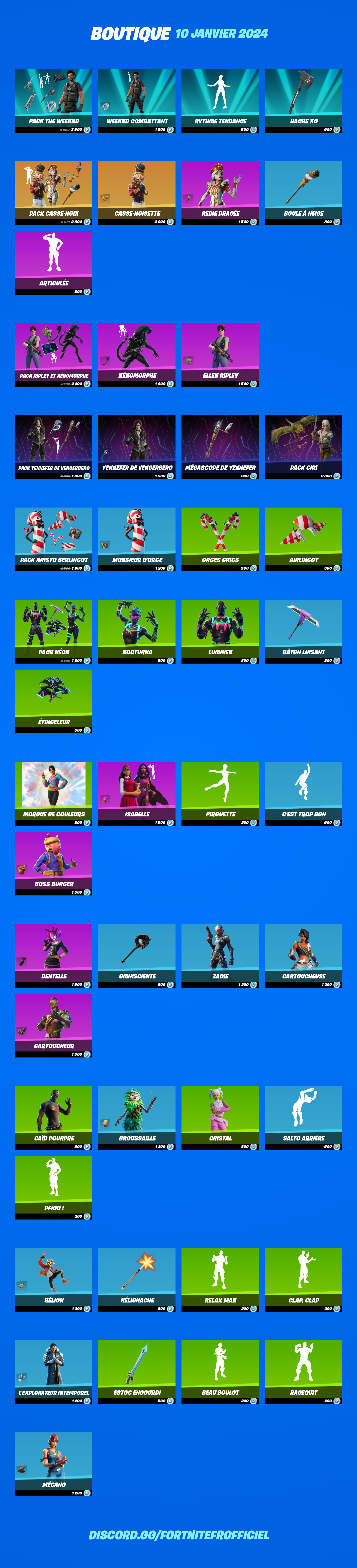 Boutique Fortnite du 10 janvier 2024, quels sont les skins en promotion