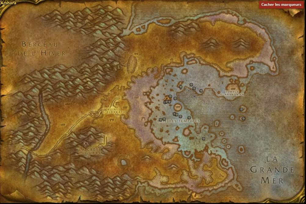 La Perle Iridescente peut être pêchée dans la région d’Azshara, spécifiquement à 18 emplacements différents. Consultez la carte pour localiser ces zones propices à la pêche de