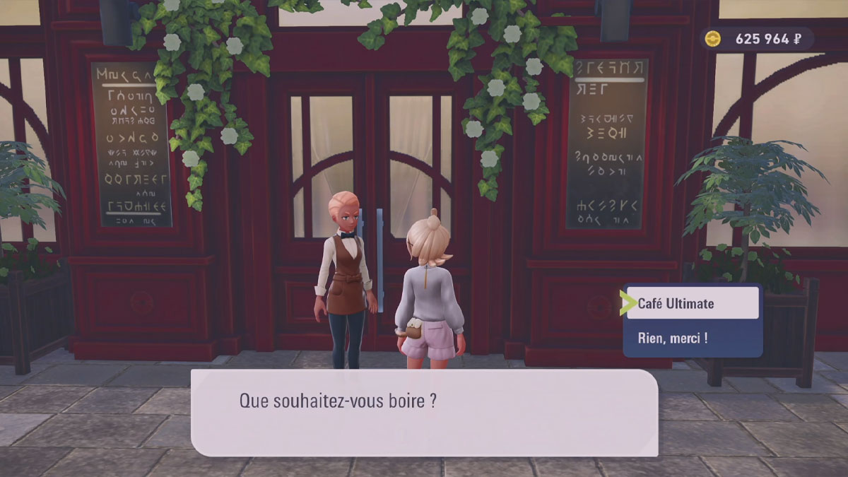établissement en particulier fait beaucoup parler de lui : l’Ultimate, connu pour son fameux Café Ultimate, affiché au prix astronomique de 100 000 Pokédollars.
