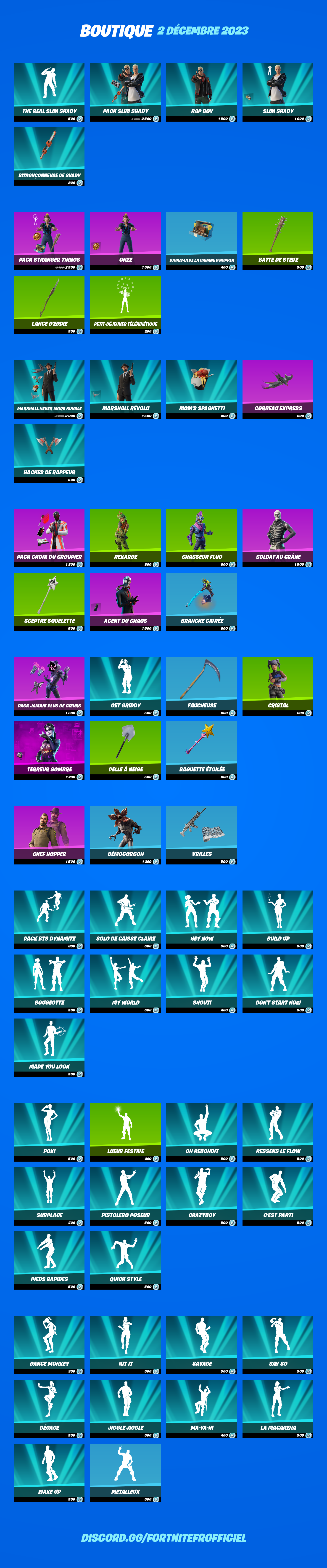 Voici la liste des skins disponible dans la boutique Fortnite du 2 décembre 2023.