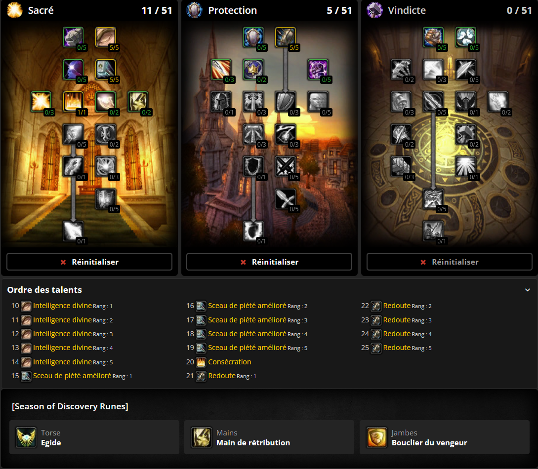 Meilleurs Talents & Runes Paladin Protection, Vindicte et Sacré – Season of Discovery WoW Classic