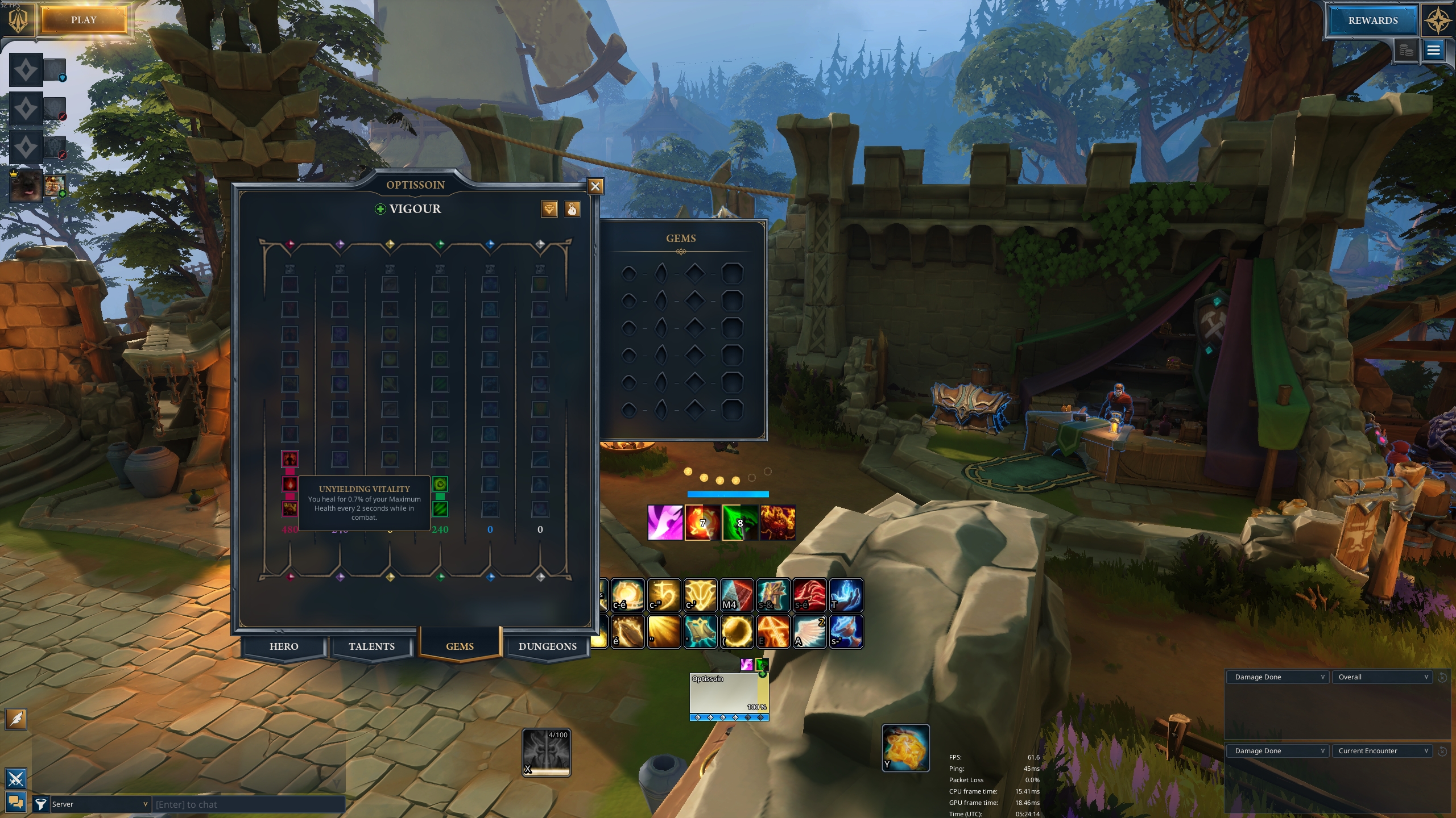 Une fois tes gemmes en place, ouvre l’onglet Gem Power dans ton interface de personnage. C’est là que la magie