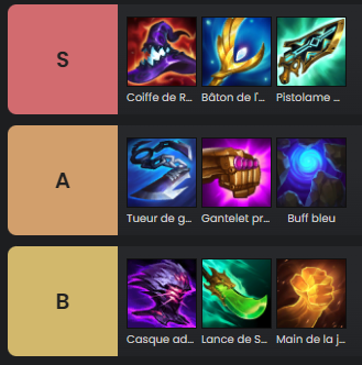jeu vous donne. Selon votre position dans la partie et l’avancée de votre composition, il sera préférable de faire un item moins fort plutôt que d’attendre. À vous de juger la pertinence de ce